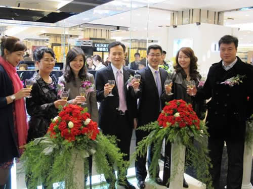 各位領(lǐng)導(dǎo)舉杯祝賀迪奧專柜興業(yè)長(zhǎng)新