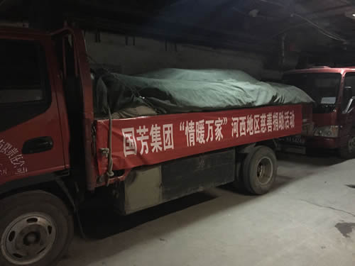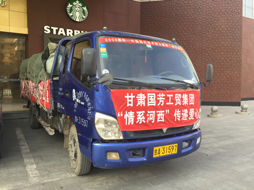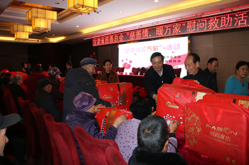 2016年12月12日,甘肅省慈善總會(huì)、武威市民政局?jǐn)y甘肅國芳工貿(mào)(集團(tuán))股份有限公司共同舉行“情暖萬家”送溫暖活動(dòng),將100萬元資金以及價(jià)值100萬元的過冬棉服帶給天祝縣岔口驛敬老院的老人們。當(dāng)日下午,甘肅省慈善總會(huì)與甘肅國芳工貿(mào)(集團(tuán))股份有限公司的各位愛心人士又馬不停蹄的趕赴張掖為當(dāng)?shù)氐墓鹿牙先藥チ?60萬元資金以及價(jià)值250余萬元的過冬衣物及被褥。此次活動(dòng)傳導(dǎo)社會(huì)幫扶、精準(zhǔn)扶貧精神的同時(shí)也默默為社會(huì)傳導(dǎo)著一份正能量。
