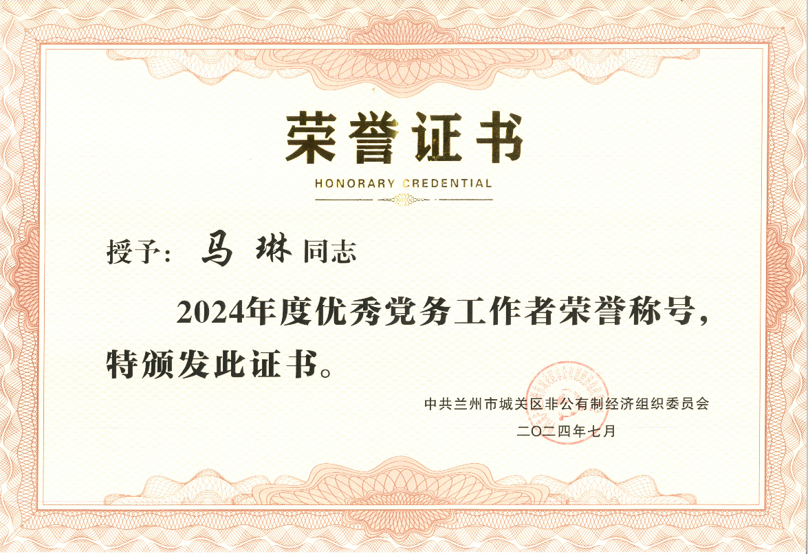 國芳集團在此次大會中表現出色。其中,黨委副書記馬琳憑借其在黨務工作中的杰出表現,被評為 2023 年—2024 年城關區優秀黨務工作者。馬琳同志在工作中始終堅守職責,積極推動黨組織建設,為集團的黨務工作做出了重要貢獻。