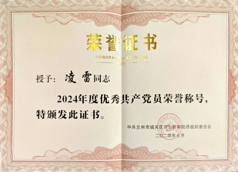 國芳綜超黨支部書記凌雷也以其突出的工作成績,榮獲 2023 年—2024 年城關區優秀黨員稱號。凌雷同志以身作則,充分發揮黨員的先鋒模范作用,在工作崗位上取得了顯著成效。